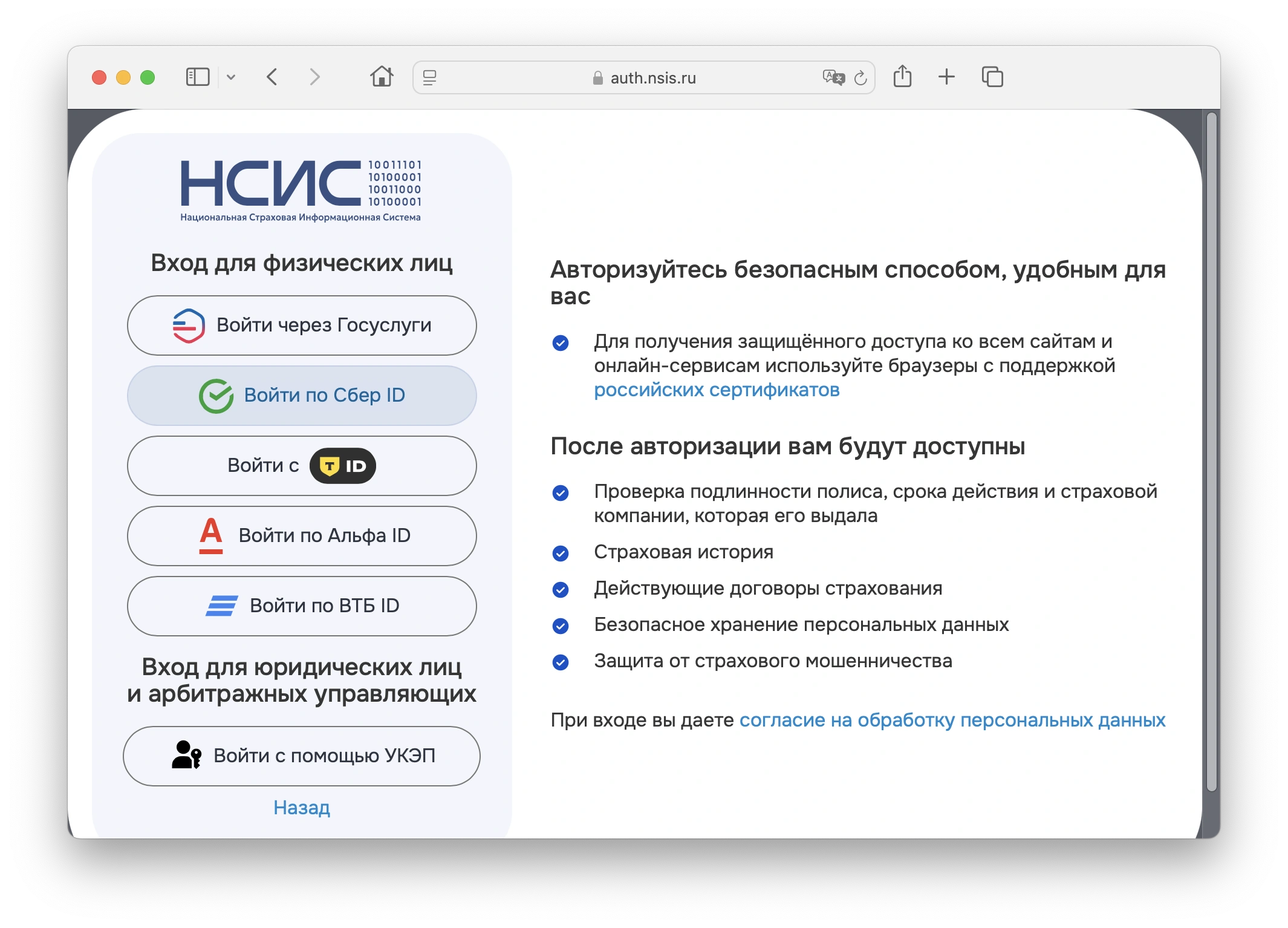 - Через личный кабинет на сайте НСИС. Доступна история всех оформленных полисов владельца.